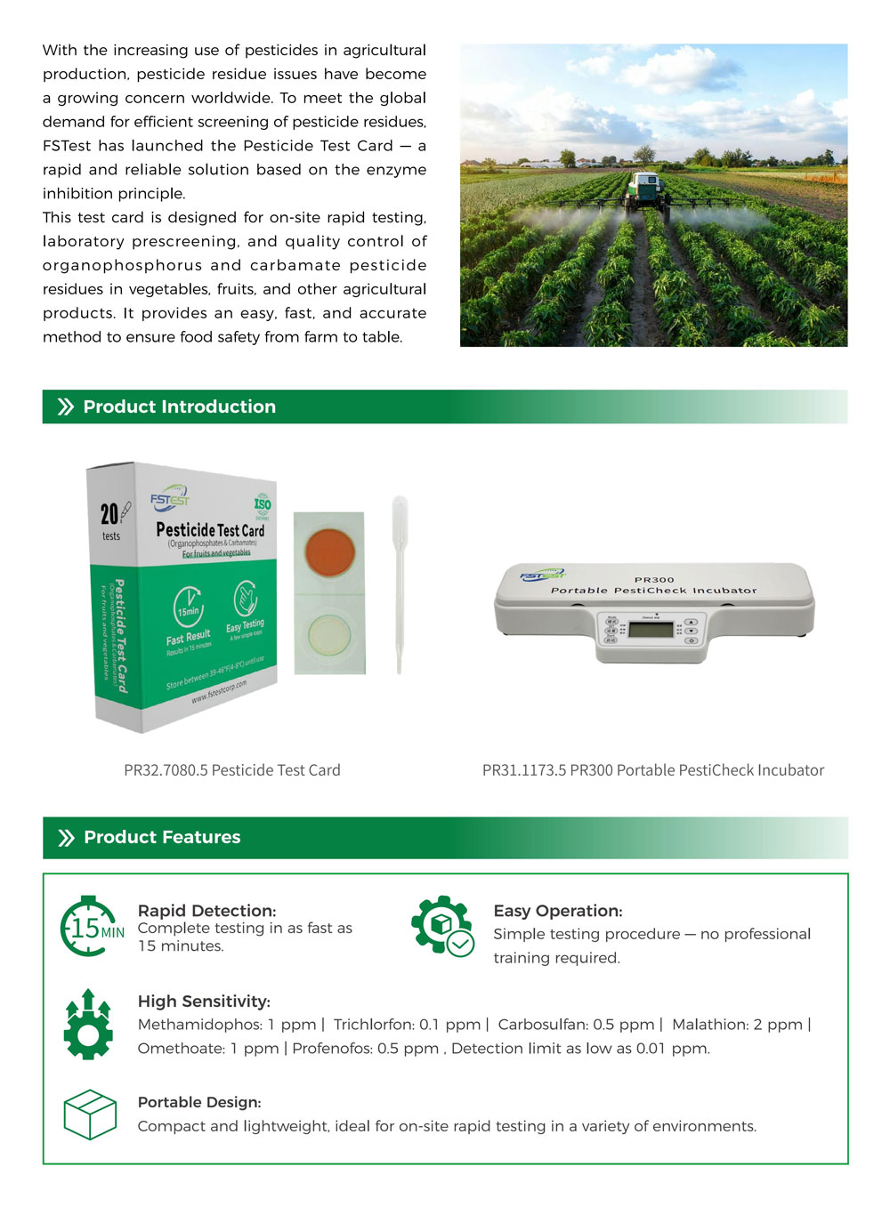 FSTest’s Pesticide Test Card is your go-to for fast, accurate pesticide residue detection (organophosphorus, carbamate) in fruits, veggies, and more.