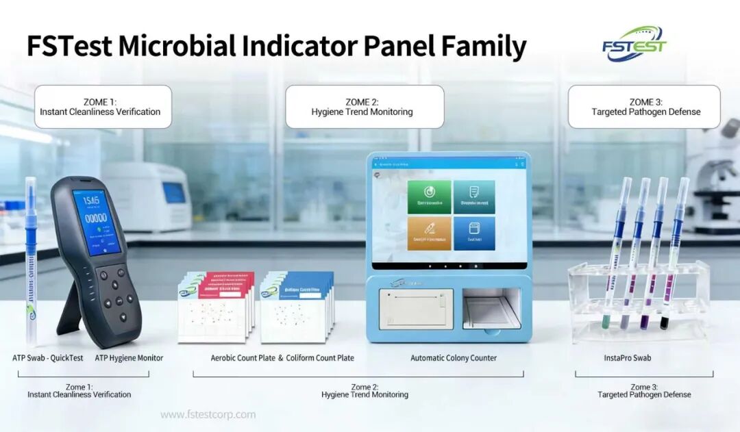 As food safety awareness peaks, FSTest is addressing the "invisible" microbial risks in school and group dining with its advanced Microbial Indicator Panel Family. Traditional 48-hour laboratory tests often lag behind consumption, and relying solely on cooking temperatures ignores the severe risks of cross-contamination from tableware and chaotic kitchen workflows.